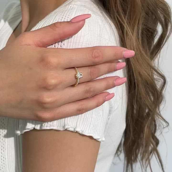 The Dream Ring is the perfect piece of jewellery for anyone who wants to express a passionate and ardent love. At the heart of the ring is an elegant oval cut that offers an incredible display of brilliance. The rimmed band is set with sparkling cubic zirconia stones that add an extra sparkle to the ring. For a particularly sparkling appearance that attracts all eyes, it is recommended to wear the Dream ring solo. This item of jewellery is ideal for special occasions or as a gift for your loved ones.