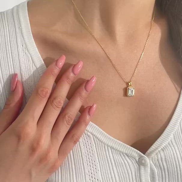 The Moscow necklace is an elegant item of jewellery that immediately catches the eye with its striking octagonal shape and the clear step-cut stone. The delicate chain makes it feel discreet to wear, while the stone's movement and the small brilliant-cut stones that frame it create a sparkling highlight. The versatile necklace can be easily combined with other jewellery from the Moscow collection and is suitable for everyday wear as well as for special occasions.