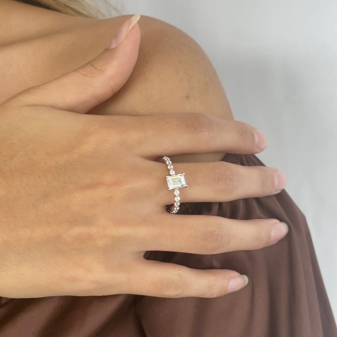 The Sienna ring is an exciting piece of jewellery with a unique design that symbolises endless love. Created to last forever, it features a modern combination of an artfully crafted octagon-cut cubic zirconia stone as the centre element. The ring shoulders are adorned with pavé-set cubic zirconia stones that create an impressive fire and make the ring even more impressive. The Sienna ring is the perfect gift for a special someone or to treat yourself.